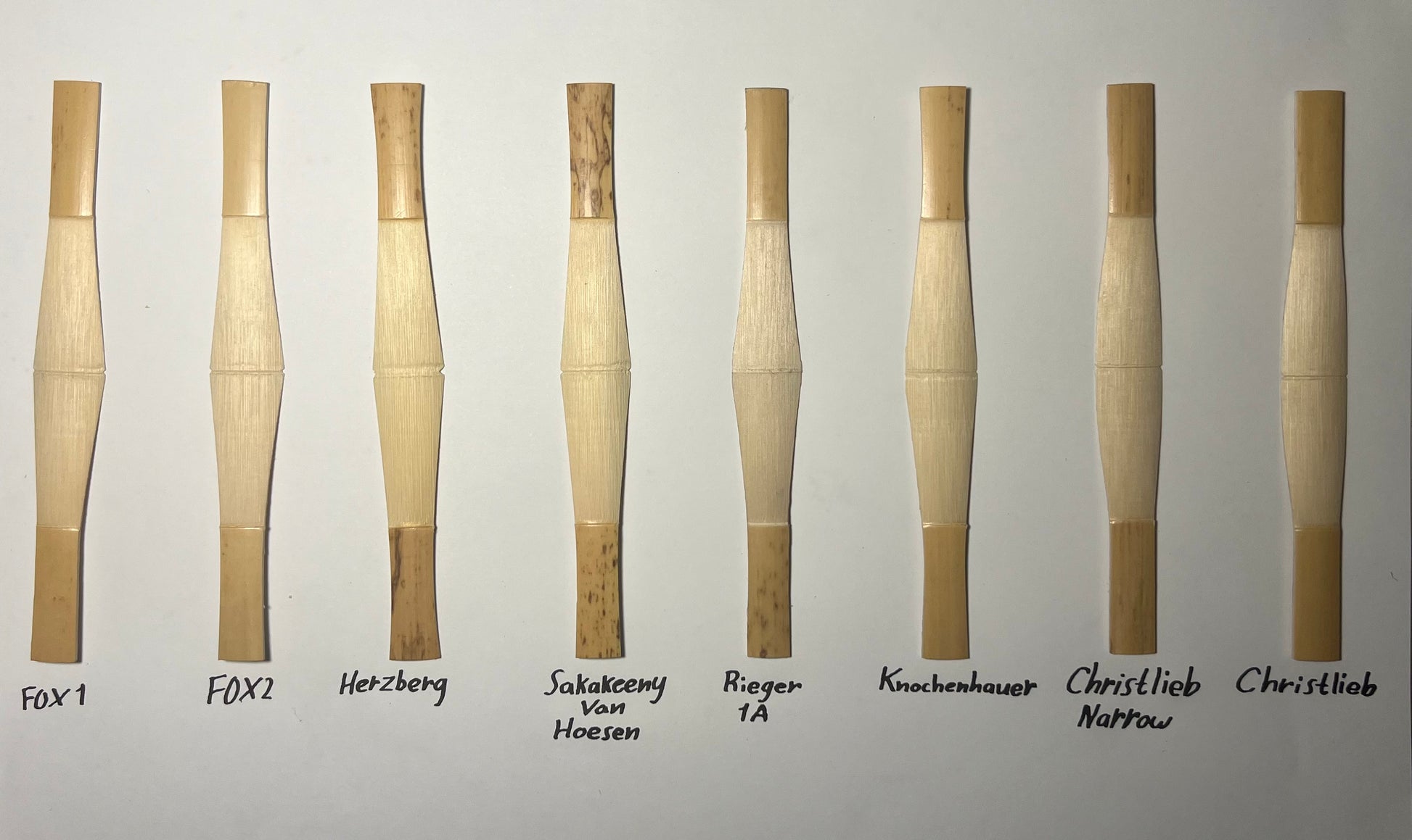 Gouged, Shaped, and Profiled bassoon cane. Hand selected for consistency, symmetry, and hardness.